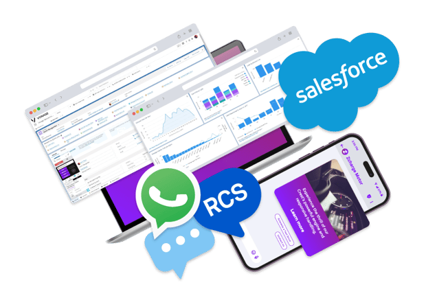 Aproveite o gerenciamento contínuo de SMS, RCS e WhatsApp diretamente na sua interface confiável. Simplificando fluxos de trabalho, oferecendo visibilidade completa dos eventos de entrega e de consentimento e dando suporte ao RCS preparado para o futuro, o Vonage Agentforce Marketing (antigo Salesforce Marketing Cloud) possibilita que as equipes executem campanhas com mais rapidez, inteligência e envolvimento com os seguintes benefícios: